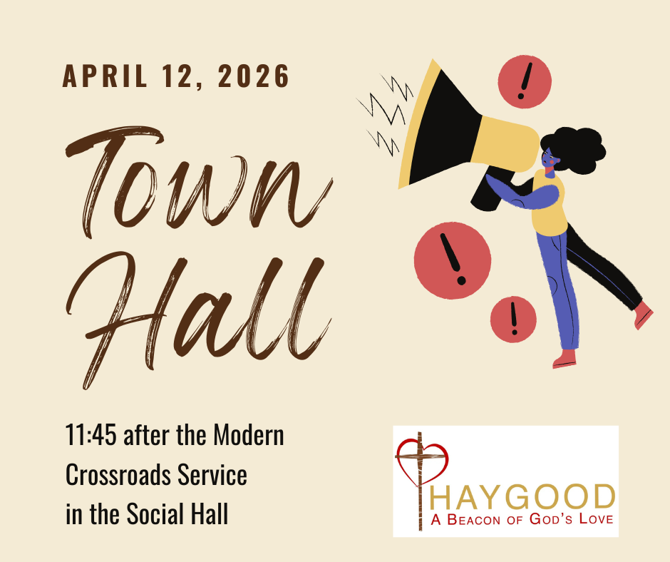 Our next Town Hall is April 12, 2026, immediately following the Modern (Crossroads) Service.